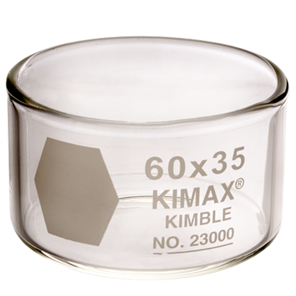 Glass dish used for the ASTM D4943 shrinkage limit test.