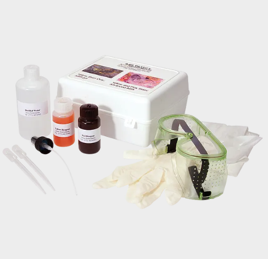 To identify alkali silica reaction (ASR) in concrete, two reagents are applied to the broken surface of a concrete core and the excess rinsed off. On contaminated concrete, the resultant stains reveal the presence of ASR. The stains also reveal the extent of the ASR in the concrete and indicate the stage of ASR progression. Yellow indicates that degradation has begun; pink warns that degradation is advancing.