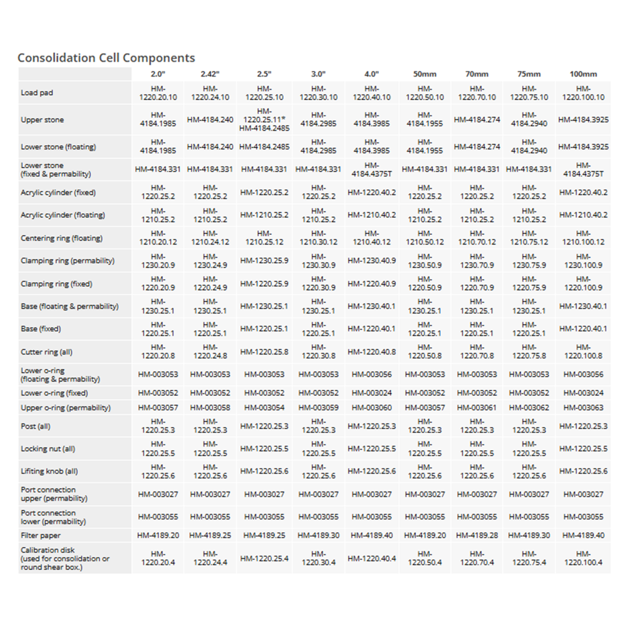 Round Calibration Disks can be used for Consolidation Cells or for Shear boxes. Size-specific, they are available for the following cell sizes: 2"; 2.42"; 2.5"; 3"; 4"; 50mm; 70mm, 75mm and 100mm. Constructed of stainless steel.