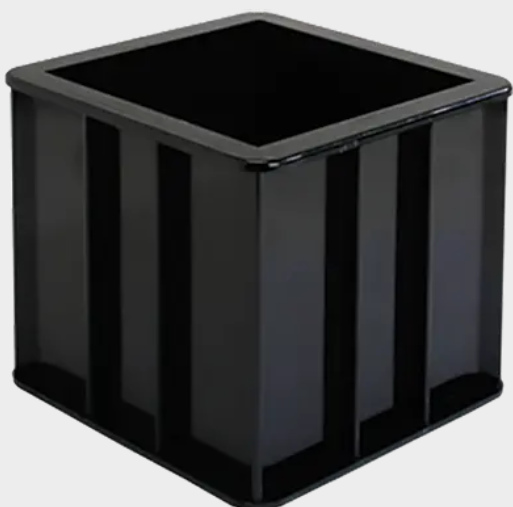 Single-cavity, two-part, steel cube mold with base plate. Used for compression testing of concrete cubes. 150 x 150 x 150mm