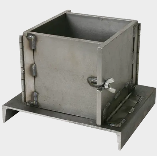 Single-cavity steel cube mold with base plate. Used for mortar specimens in the time of initial and final setting of concrete.