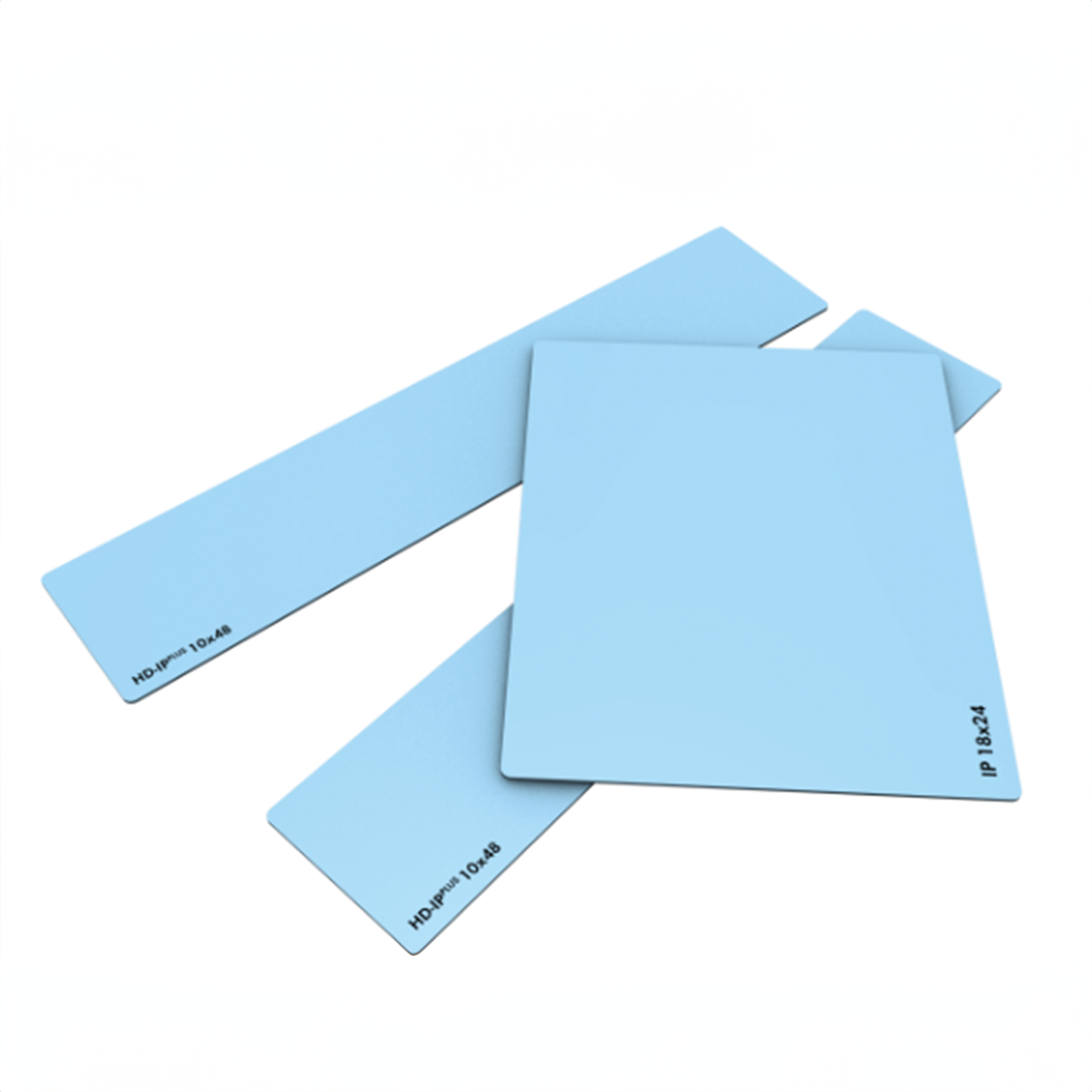 An essential part of the CR system is the imaging plate or IP. Dürr NDT IP’s are made of a photostimulable phosphor layer bonded to a flexible polymer base. HD IP’s are usually blue in colour, while the high sensitivity/general purpose CR IP’s are white.