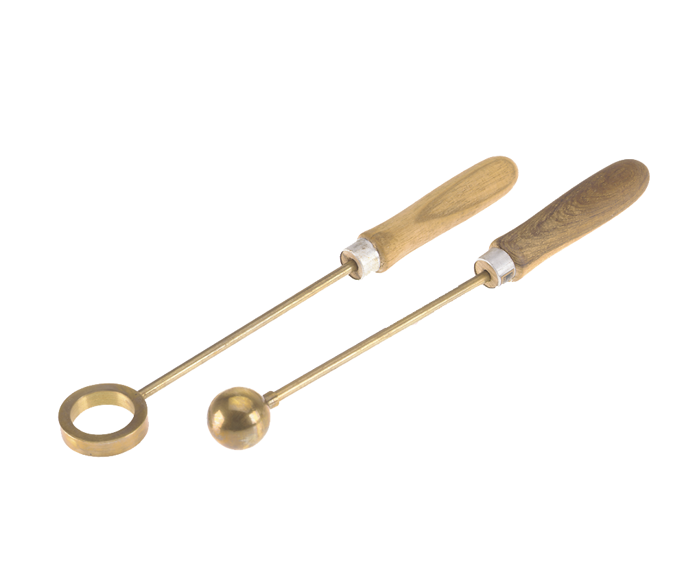 Used to demonstrate the thermo-expansion of metals. In use, the brass ball will pass through the ring easily when both are at the same temperature, and won't pass through at all when heated. The ball and ring are securely mounted on a rod with a wooden handle.