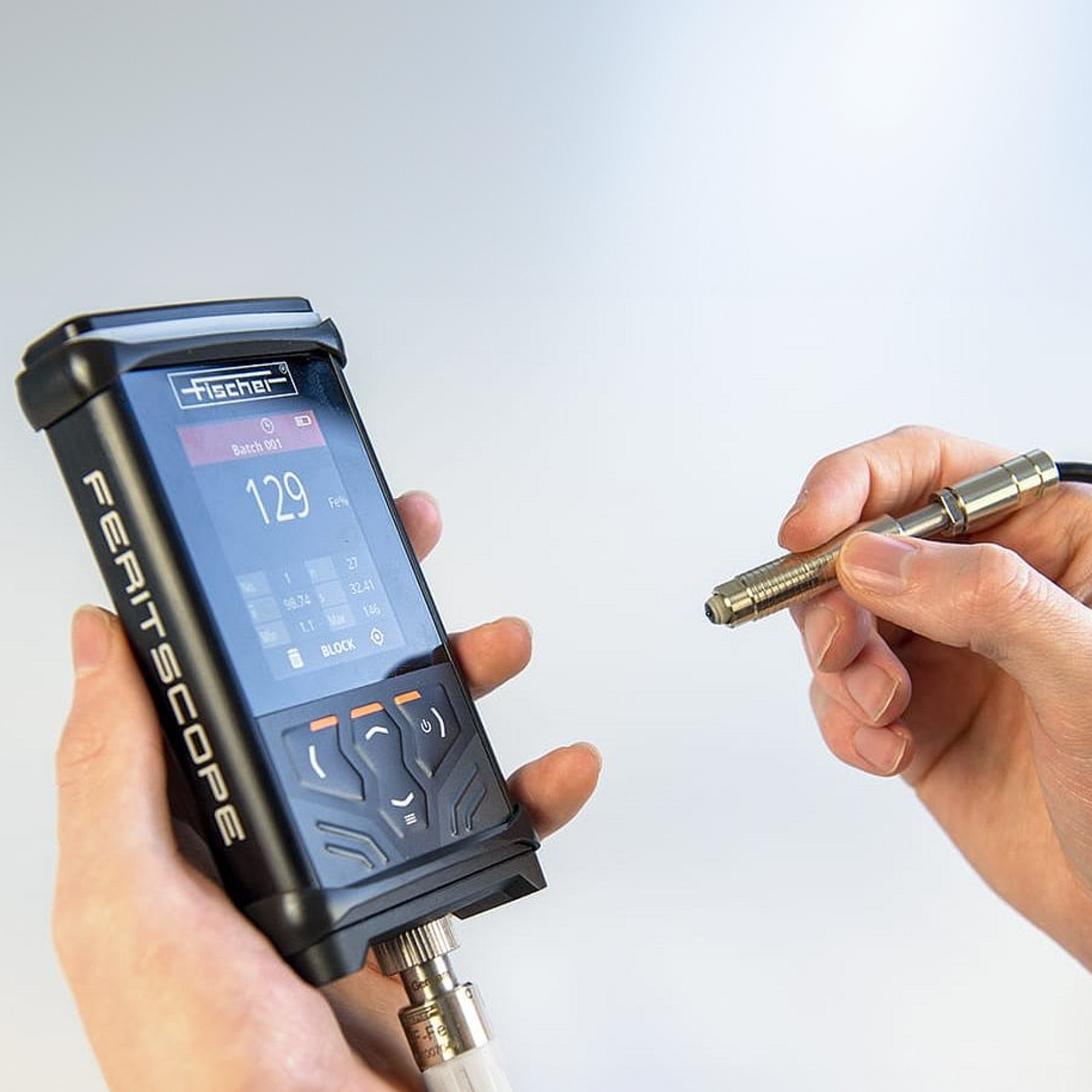 The benefits of the rugged handheld device are particularly evident in chemical plants, power plants and process plants, where austenitic steels and duplex steels need to withstand heat, aggressive media and high pressure. With its modern design and intuitive Tactile Suite software, the instrument provides impressive functionality. Various probes from Fischer give you full flexibility, so you can easily measure ferrite content even if the location is difficult to access. Just put the probe on the surface - the FERITSCOPE DMP30 does the rest.