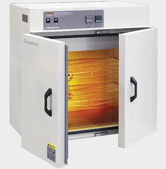 Ideally suited for soil and asphalt testing, the Despatch LBB series ovens feature fast heat-up rates and precise, easy-to-read digital controls. Powerful heating elements bring the oven to temperature very quickly, resulting in fast test results and improved sample quality. Digital controls deliver precise temperature and a large LED panel makes it easy to monitor oven temperatures. The LBB series ovens operate at temperatures up to 400°F (204°C) and use forced convection airflow for uniform temperatures throughout the oven chamber. Standard shelves can handle up to 50 lbs. (22.7kg) and are easy to slide out and reposition. Shelves that can handle 200 lbs. (90.7kg) of material are available as an option. Meets AASHTO uniformity requirements of ±3° at 150°C. Motor and fan are located above the stainless steel oven chamber to prevent damage if materials are spilled.