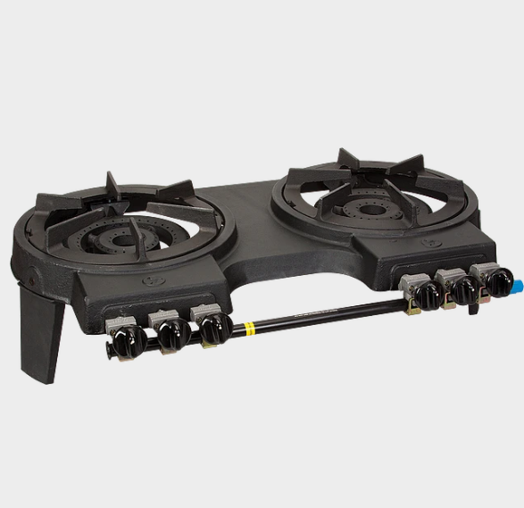 Two-burner, heavy-duty cast iron stoves. Models available for natural and cylinder gas operation. Designed for portability, this stove is perfect for any lab or location application. Burners are rated at 35,000 BTU and provide fast heating. Shpg. wt. 53lbs. (24kg)