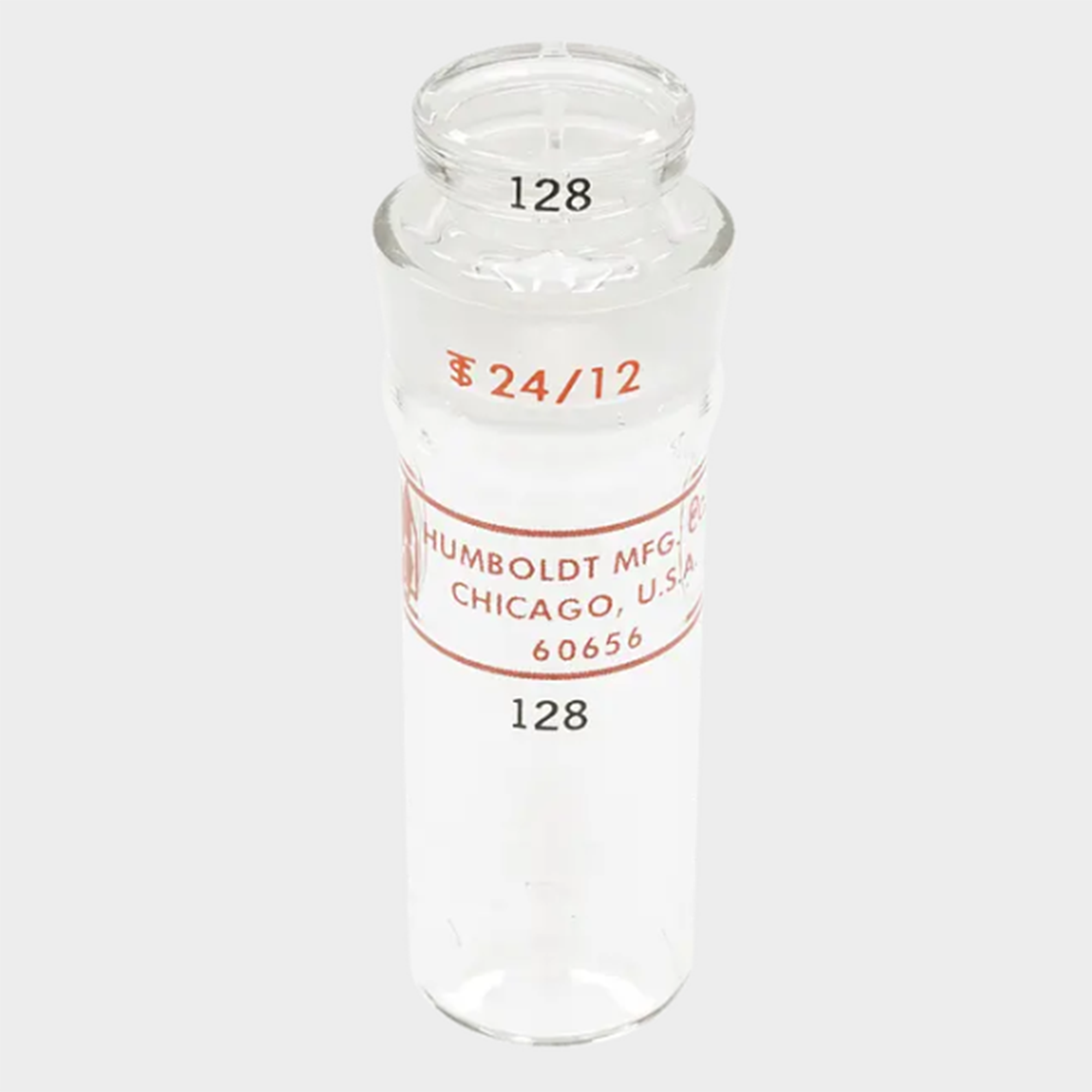 Hubbard-form 24ml bottle for determination of specific gravity of semi-solid bituminous materials, asphalt cements, soft tar pitches and emulsions. Features ground-in stopper with 1.6mm hole.