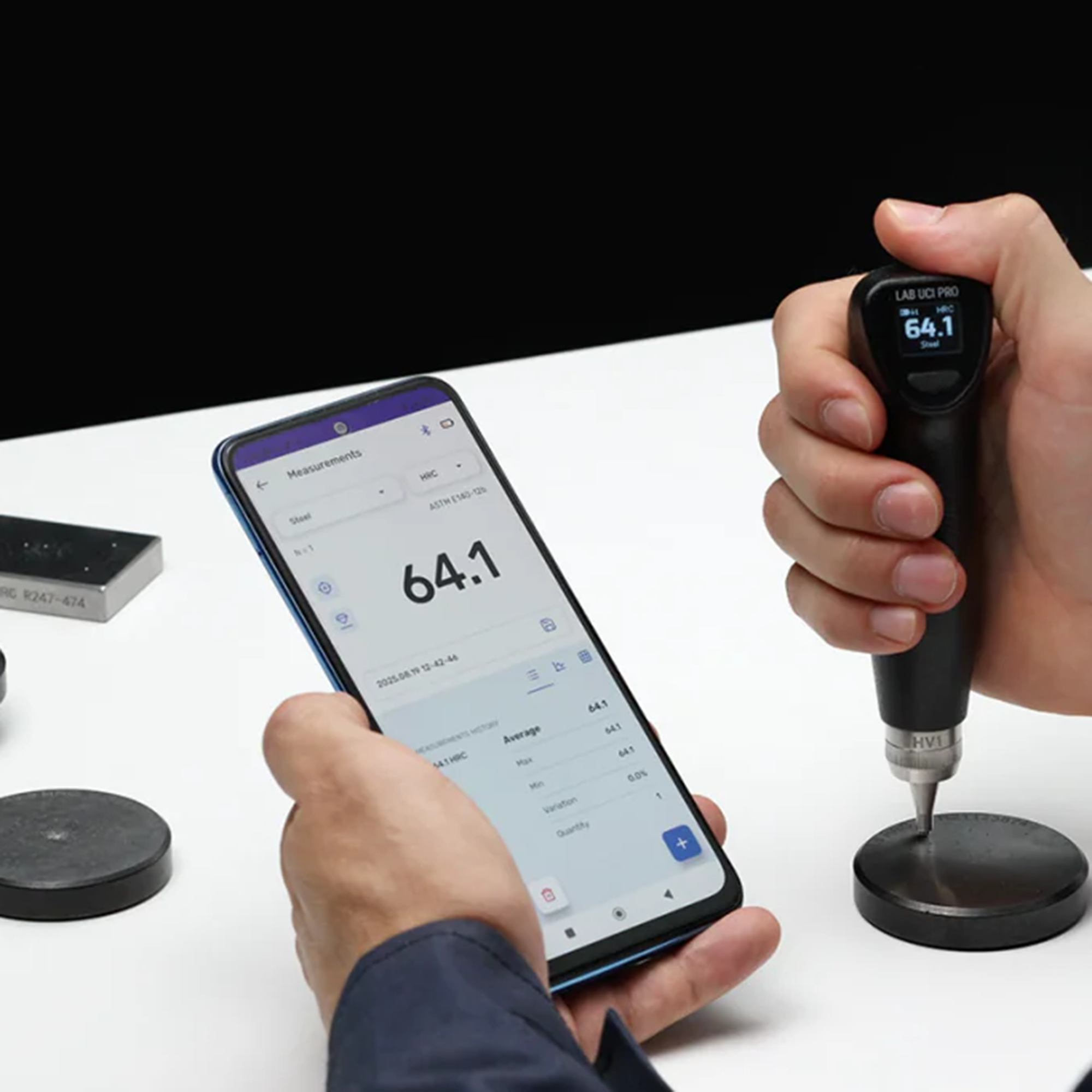 The innovative probe and UCI technology minimize operator influence, ensuring highly repeatable results even on thin components, complex shapes, and surface-hardened layers. Lightweight, ergonomic, and portable, the Lab UCI Pro makes precision hardness testing easier and more reliable, whether in the lab or on-site.
