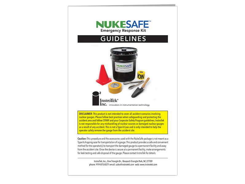 The NukeSafe Nuclear Gauge Emergency Response Kit is the perfect tool to help recovery efforts after a nuclear gauge accident. The kit includes items and instructions to safely remove a damaged gauge from the accident site. This is a perfect kit the back of the work truck, van, or at the home office.