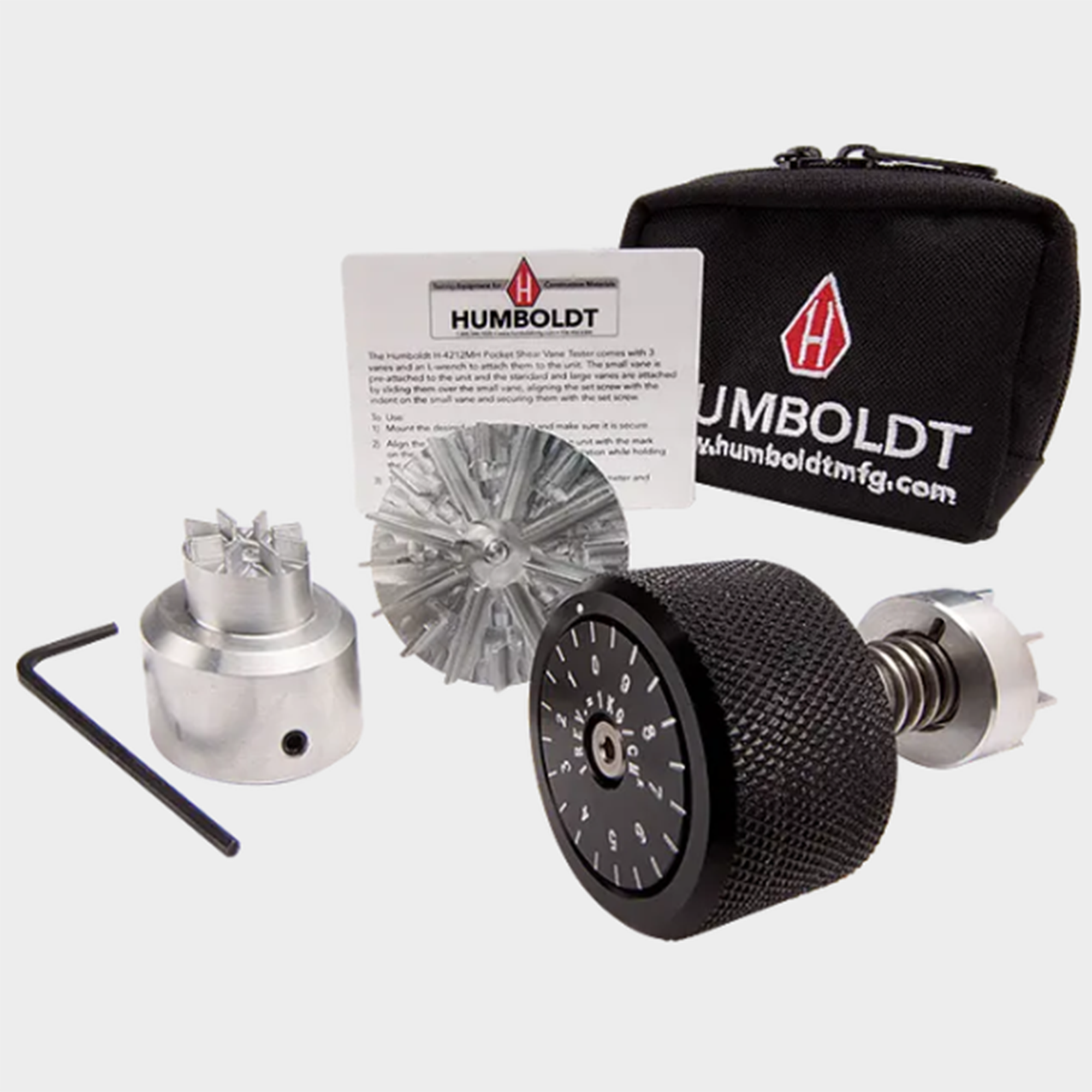 The Humboldt H-4212MH pocket shear vane Tester provides a quick and efficient method for determining shear strength values of cohesive soils. The pocket shear vane is widely used for taking on-site measurements of excavations, including trenches and test pits. It is also used for taking readings from thin-wall or split core soil samples. It can also be used in the laboratory for evaluations. The device is widely used by safety and OSHA inspectors, back hoe operators, field testing technicians, consulting engineers, etc.
