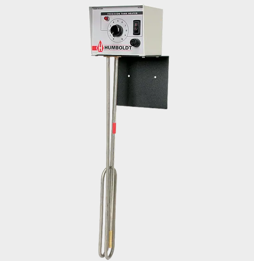 Designed for efficient and economical indoor operation with H-2969 series curing tanks where temperature does not fall below 55°F (13°C). Temperature is thermostatically controlled and adjustable. The 1,000W, 8.3 amp, 120V solid-state controlled element will warm to a maximum of 200°F. Heater is Incoloy sheathed to prevent rust and is secured to aluminum base. Base provides protection for heater components from test cylinders in the tank. Overall length: 22.5" (57cm).