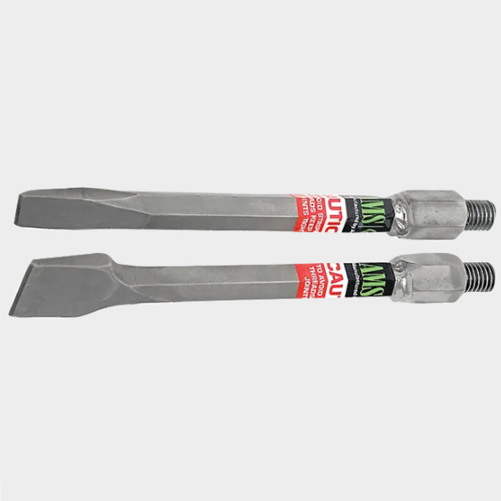 Pair of rock breaking attachments for auger sets. 5/8" threaded-end for attaching to extensions and slide hammers. Used to split or chip rocks and stones found in an augered hole. These rock breakers are alloy-steel, sharp-edged chisels designed for use with slide hammers. Used to break up obstructions in augered holes.