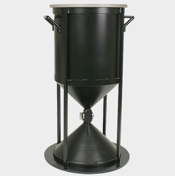 For determining in-place density of gravel and coarse soils. Features two identical cones with a large valve between them and a circular density plate for support on the bottom. A clear plastic cover on the top cone allows for viewing sand flow. The unit also has handles for easier carrying. Flange that fits the lower cone allows apparatus to be used on holes up to 12" (305mm) dia. Complies with U.S. Army Corps of Engineers specifications.