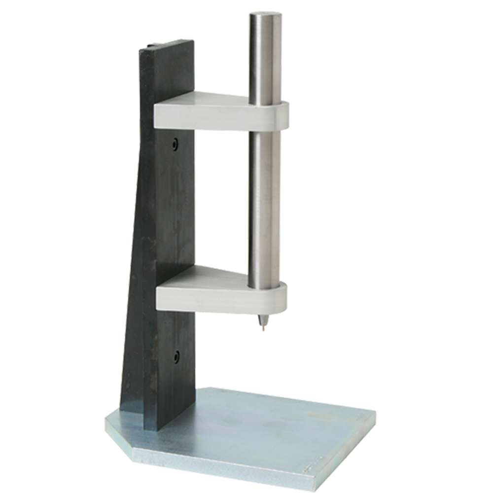 Determines quantity of soft particles in coarse aggregates on basis of scratch hardness. Apparatus consists of 0.0125" (1.6mm) dia. brass rod with rounded point inserted into plunger. Overall weight of brass point and plunger is 2 ±0.1 lbs (8.9 ±0.4N). Plunger is mounted on support stand, permitting plunger to lower and raise freely. Furnished with (1) replacement brass rod.
