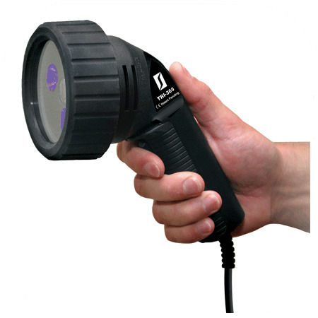 TRITAN™ 365 SERIES NDT lamps are Spectroline’s signature inspection lamps, and are used around the world for reliable inspections. TRITAN™ lamps feature three hi-flux UV-A (365 nm) LEDs for fluorescent inspection, plus a convenient white light LED to locate surface flaws and illuminate dark work areas. Their broad-beam configuration provides an extremely wide coverage area, while a compact head design allows access into areas inaccessible to larger UV inspection lamps.
