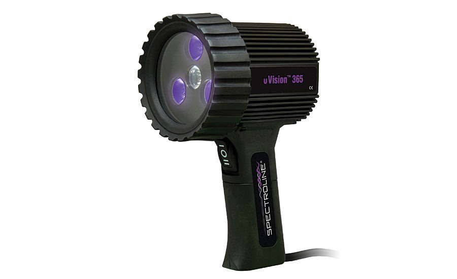 The uVision™ 365 SERIES is Spectro’s innovative line of compact, broad-beam NDT handheld lamps. These lightweight yet rugged lamps boast an IP65 rating – they are dust-tight and water-resistant. Using a state-of-the-art heat sink design, the uVision™ is mechanically cooled without the need for a fan. In addition to three powerful UV-A (365 nm) LEDs, it has a convenient white light LED for illuminating work areas. Compliant versions have embedded microprocessors to keep lamps within specifications.