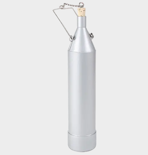 For beaker sampling from tank cars, tank trucks, shore tanks, ship and barge tanks. Copper construction with weighted bottom. Includes handle and chained cork. Takes all level samples, as well as running and outlet samples. Select .75" (19mm) opening for light crude oils, light lubricating oils, kerosenes, gasolines, transparent gas oils, diesel fuels and distillates. Select 1.5" (38mm) for heavy crude and fuel oils, heavy lubricating oils and nontransparent gas oils. Body is 3.375" dia. x 14"L. (86 x 356mm).