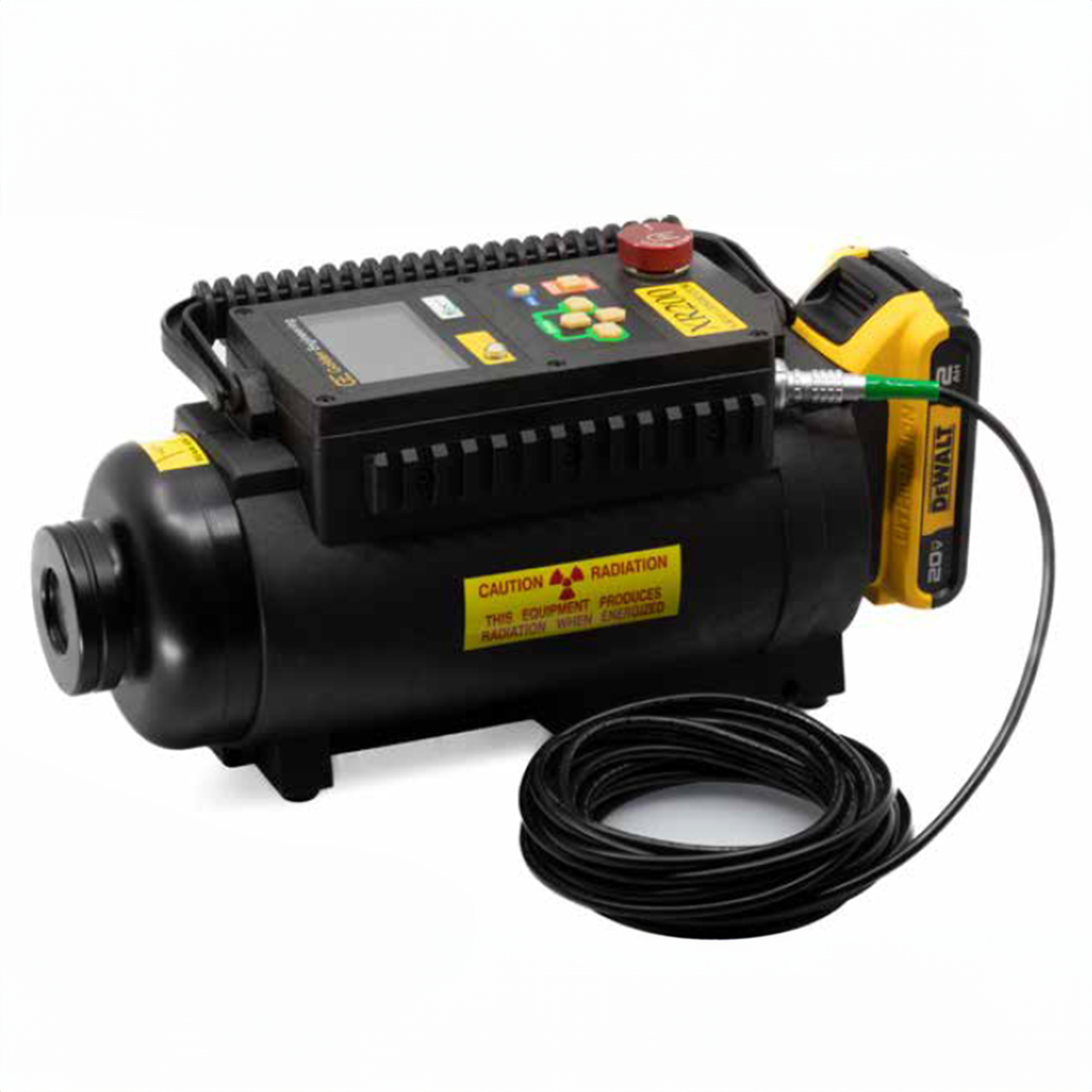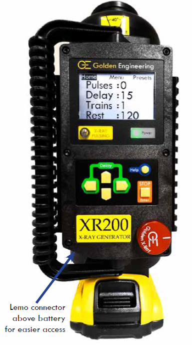 Sharing the same electronics, housing design and battery pack as the XRS3 generator enhances the versatility of both models. A field replaceable tube and modular concept make the XR200 easy to service and maintain. The robust single package design withstands the extreme environments that field portable X-ray generators commonly encounter. The generator is powered by a DeWalt® battery pack available worldwide. A pulse rate of 25 pulses per second makes it the fastest of all Golden Engineering models.