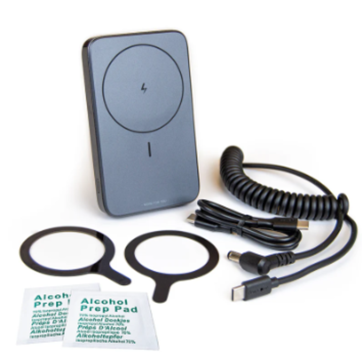 Contents: Power Pack, 2 ring magnets, nuclear gauge charging cord, USB-C charging cable, 2 alcohol wipes